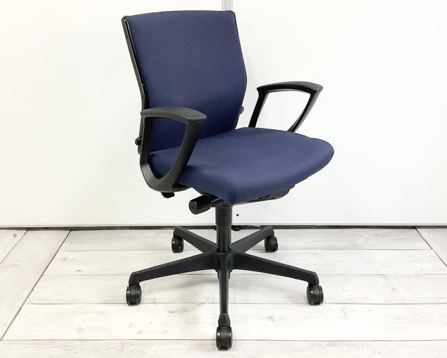 【関西倉庫在庫】■オカムラ(okamura)製 エスクードチェア 肘付ローバックチェア ■ダークブルー×グレーシェル ■デザインアーム ■ランバーサポート 【弊社使用欄:A01029268】
