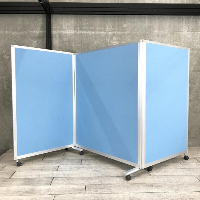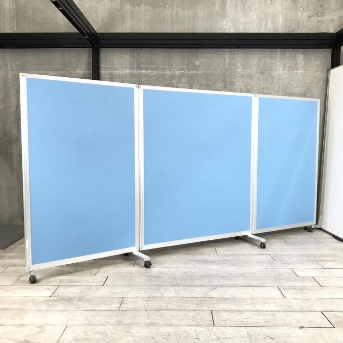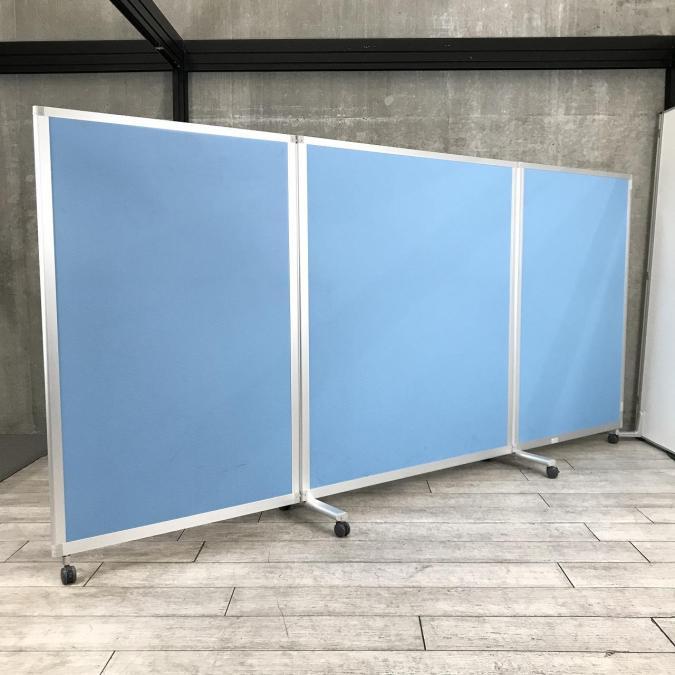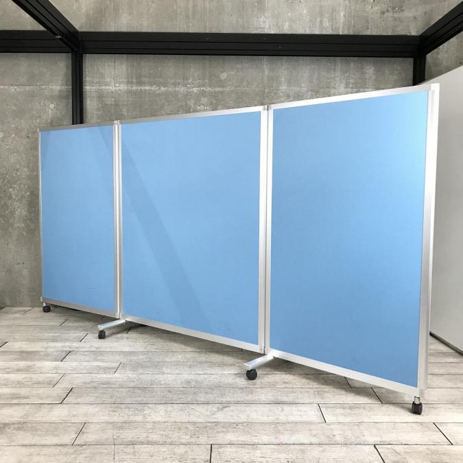 【キャスター付で便利に使える!】希少な3連パーテーションが入荷!3連衝立パネル【折り畳み式間仕切り】 ■イトーキ 3連パーティション ブルー W3010(900+1210+900)×H1450- 立川・八王子店