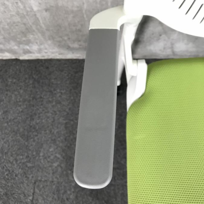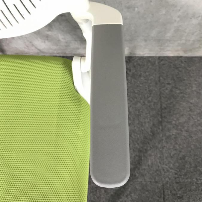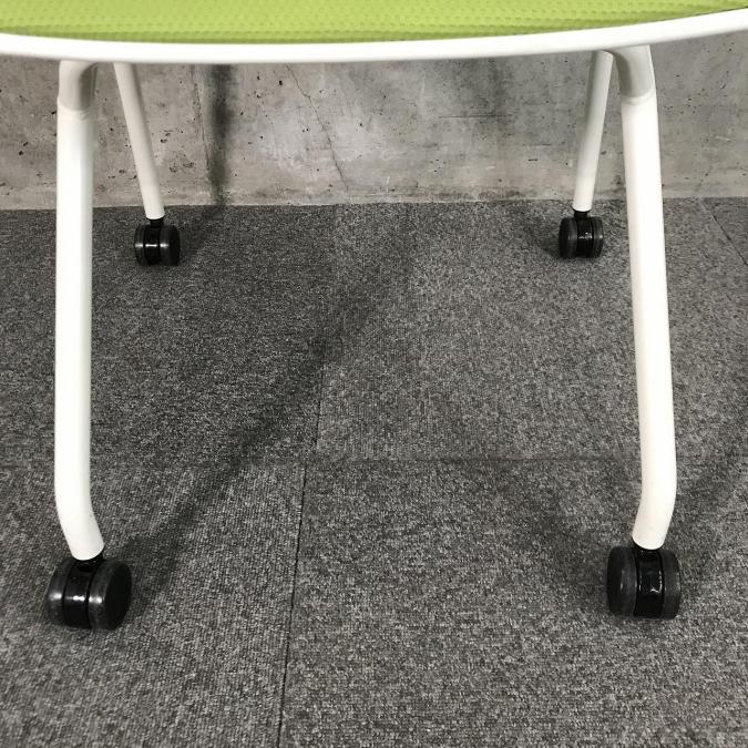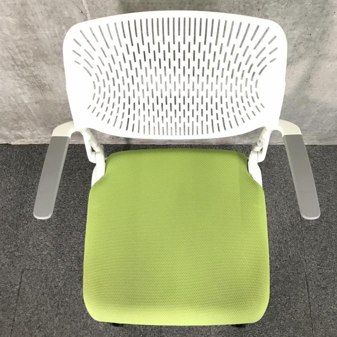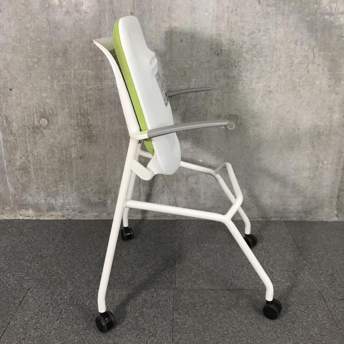 【コストパフォーマンス重視の方オススメ!通気性抜群!】■オカムラ製 ルナ 肘付ネスティングチェア ■座面グリーン×背面ホワイト ■固定肘 ■背面樹脂メッシュ ■キャスター付サーキュラーバリューCO2削減量の算出について