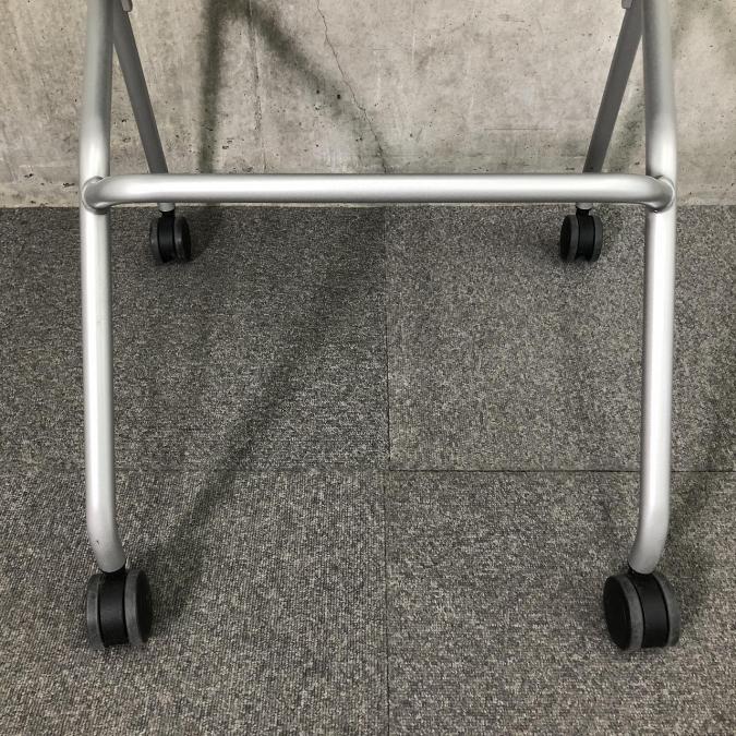 キャスター付きで軽快に水平移動できる4本脚タイプで、座を跳ね上げることにより平行にネスティングが可能です。