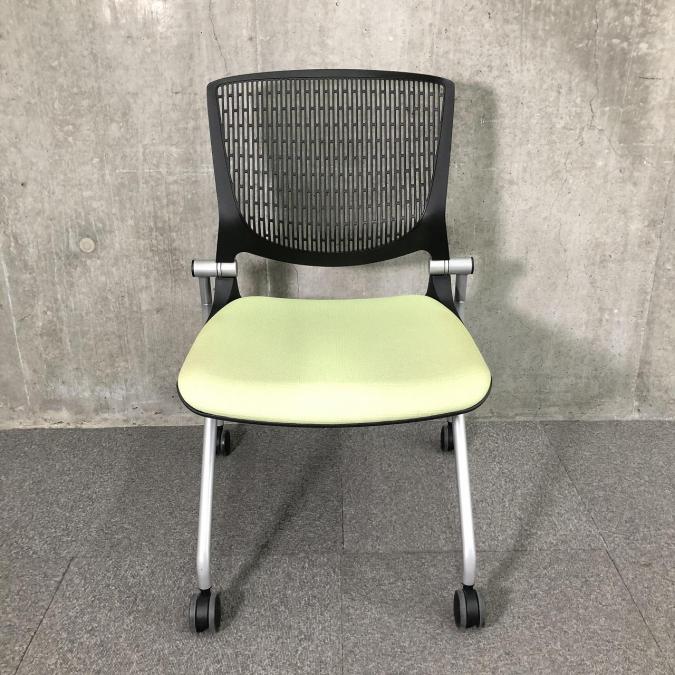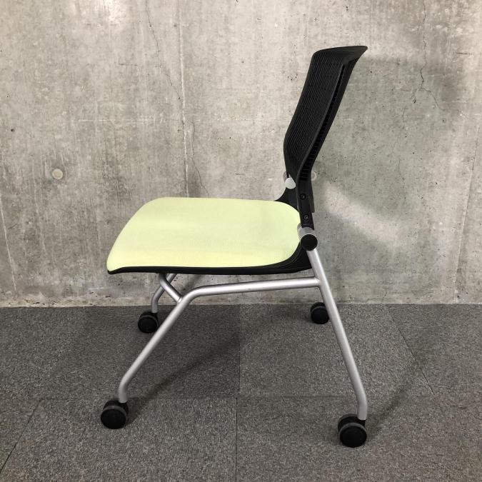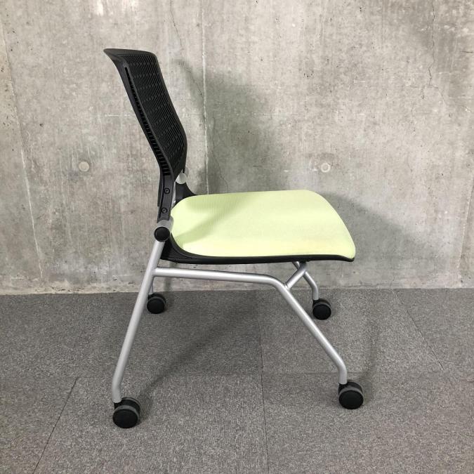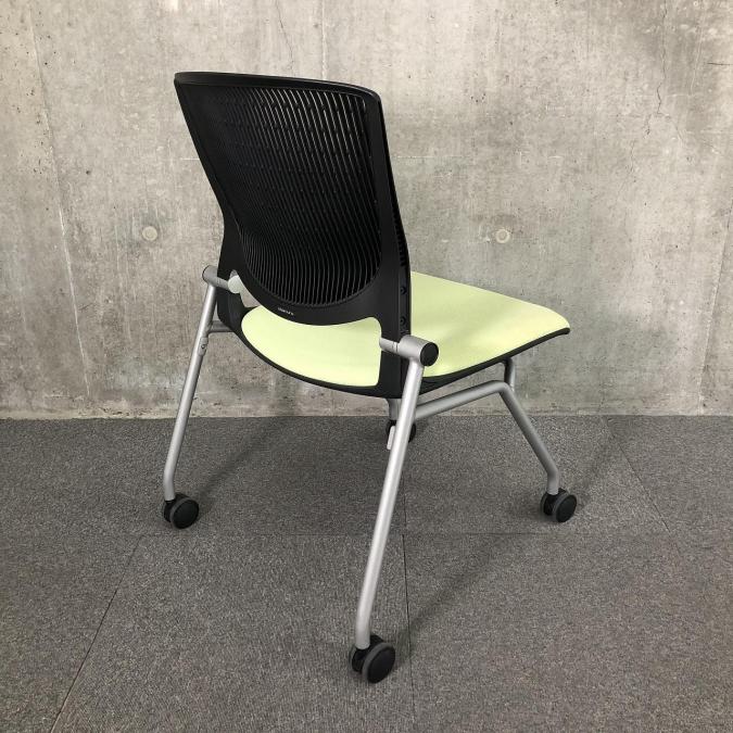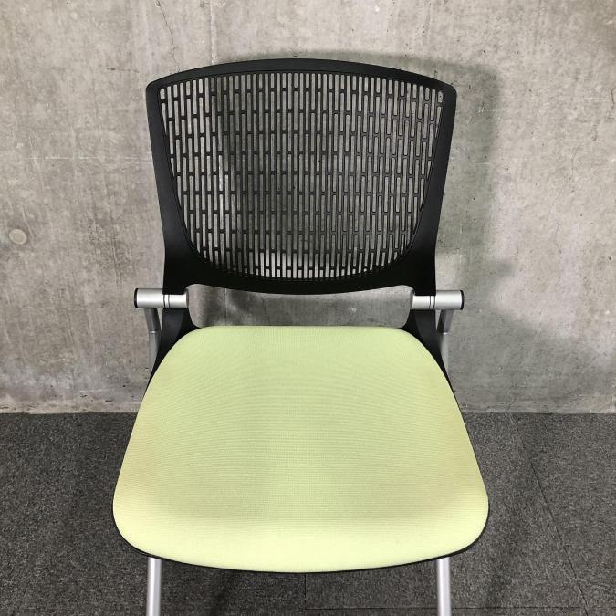 【在庫セール品・8脚限定】【T10】■オカムラ(okamura)製 グラータ (Grata) 肘無しミーティングチェア ネスティングチェア ■背面樹脂メッシュ ■座面:グリーン【スリット構造のシェルがワーカーを軽やかに受け止める!】