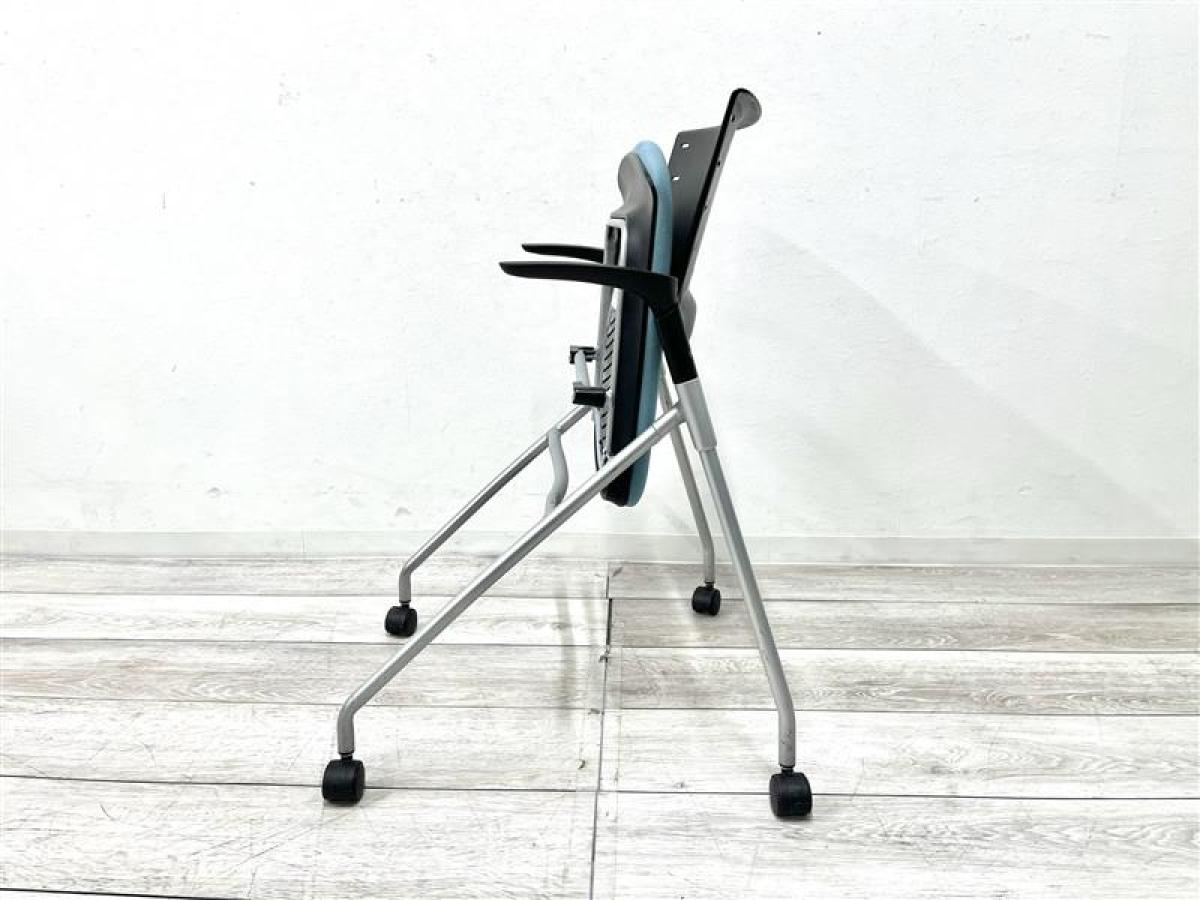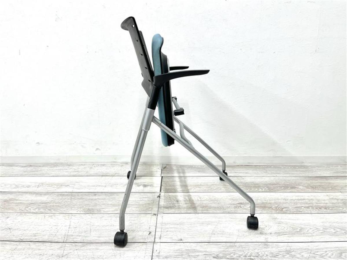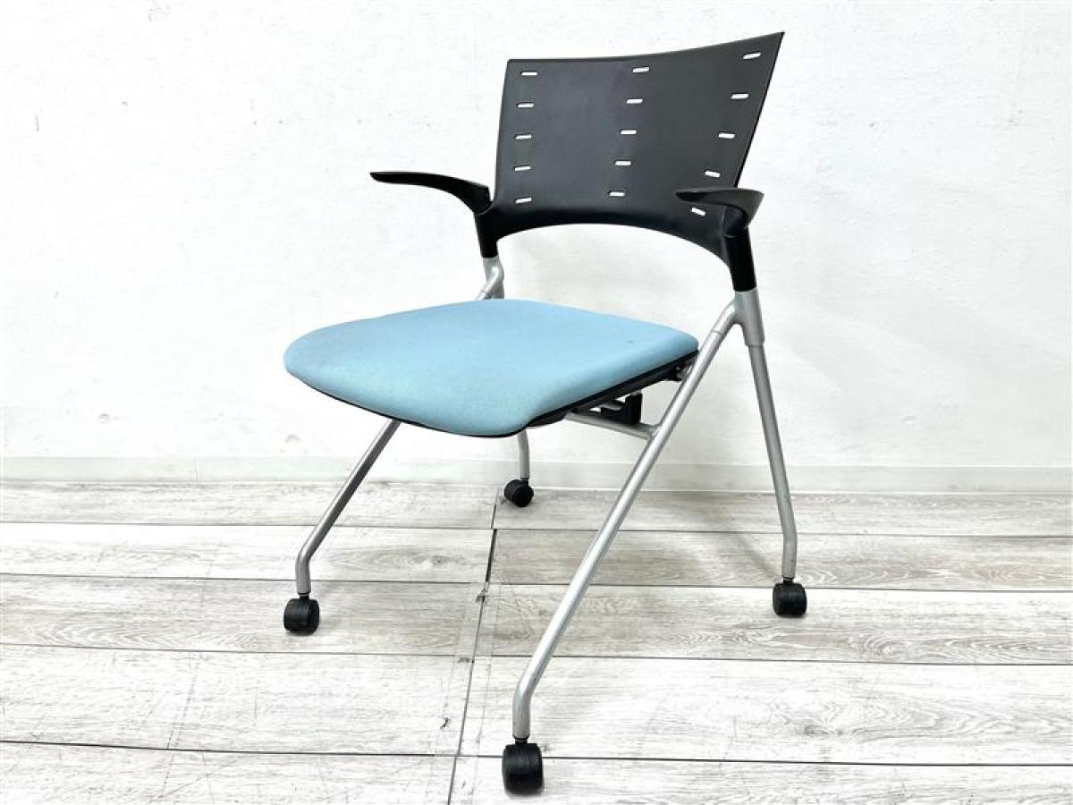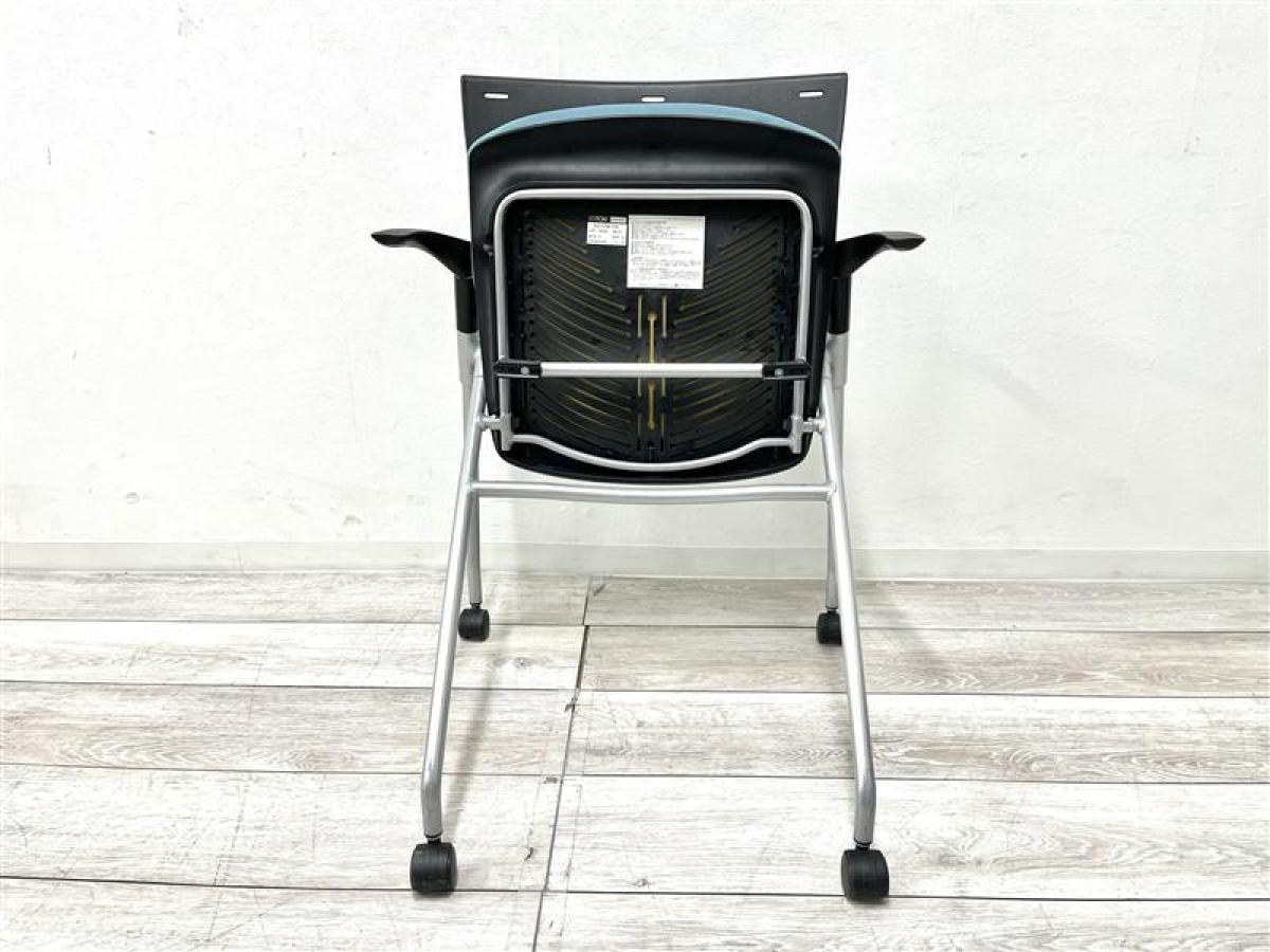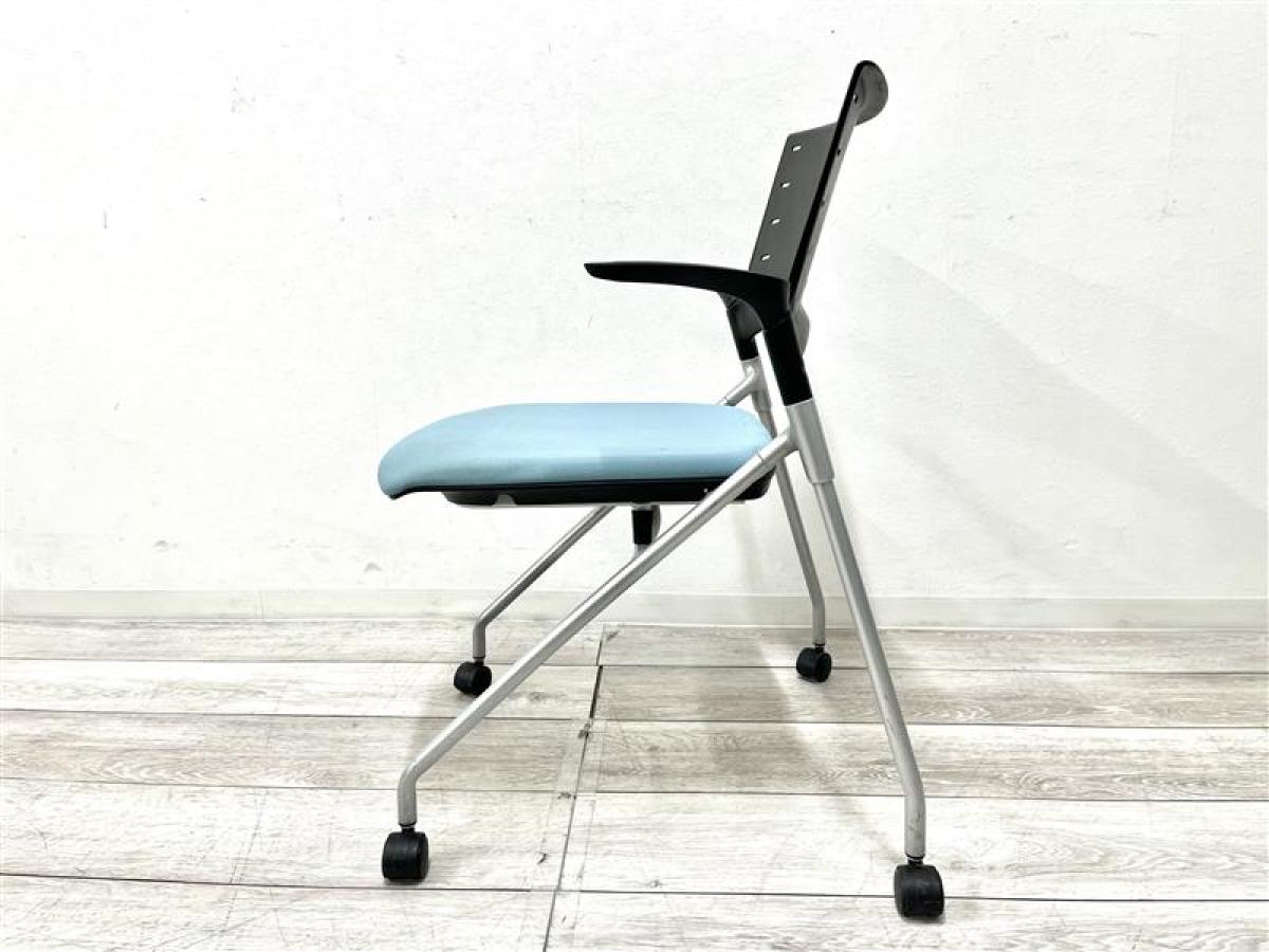 【関東倉庫在庫品】【フレキシブルに使える!平行ネスティングで省スペース化!】■イトーキ(ITOKI)製 マノス(MANOSS) ネスティングチェア ミーティングチェア ■背パッド付 ■キャスター付 ■ブルー【弊社使用欄:A01014525】【ECBMC】