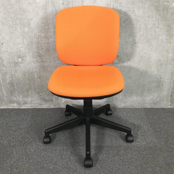 【定価4万円】【シンプルなのに上質!フィット感が快適なコンパクトサイズのOAチェア!】■プラス(PLUS)製 プリセアチェア ローバック 肘無し ■オレンジ- 大阪・堺店