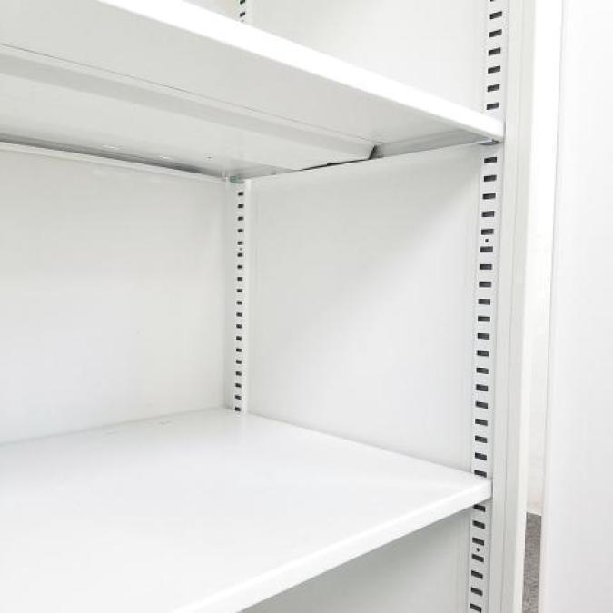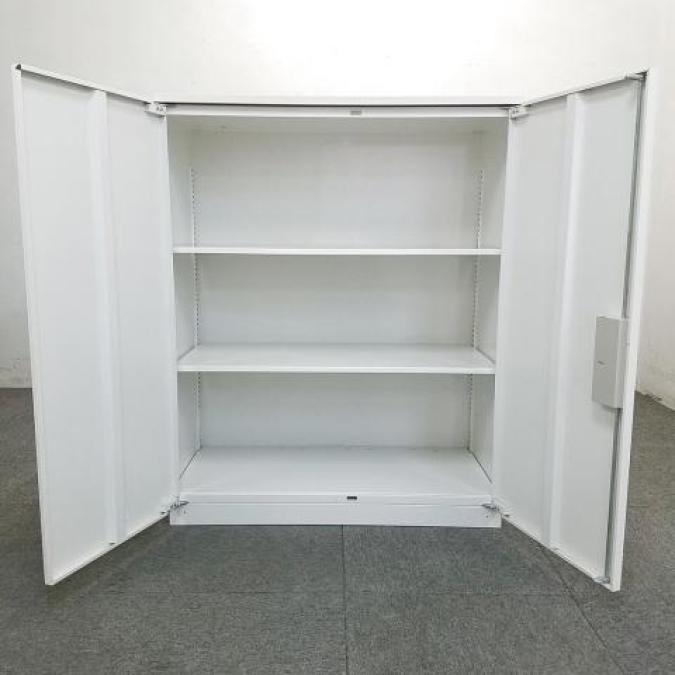 イトーキ製、シンラインシリーズの両開き書庫、人気のホワイトカラーです。