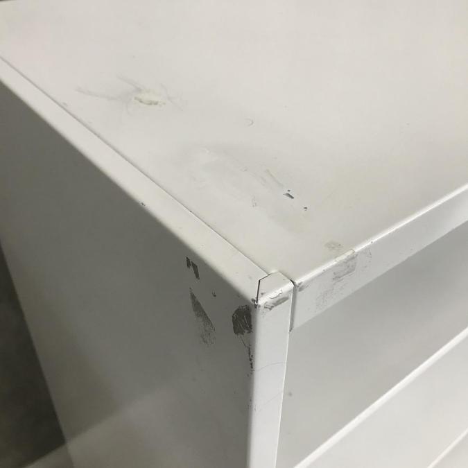 - 多数不具合あり引出の開閉不可、施錠不可、棚板無しといったその書庫の本来の効用を果たすための機能以外の多数が使用不可(例、扉、引出の開閉がしづらいなどがある。 )