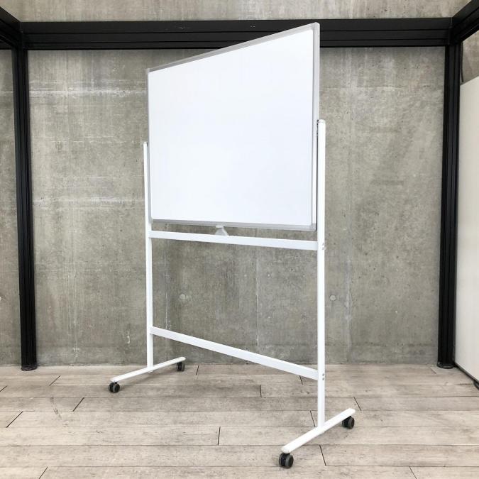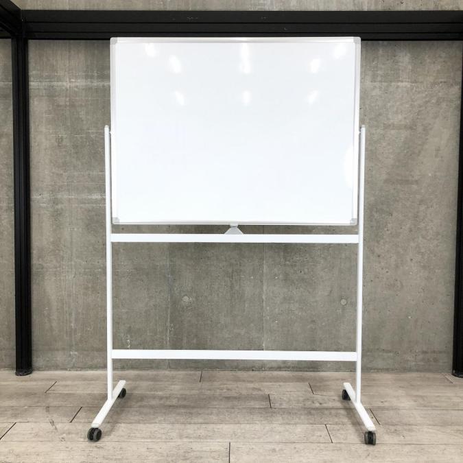 【オフィス会議の必需品!ミーティングにもオススメ!】■脚付ホワイトボード W1250×H1860mm 両面タイプ 回転可能 ■ホワイト ■キャスター付- 春日部・越谷店