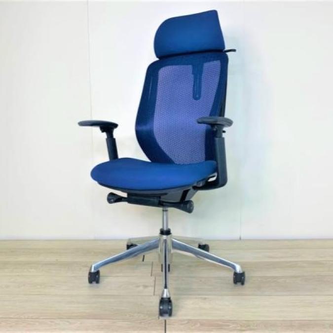 【新品ヘッドレスト交換済み】オカムラ/シルフィー/ブルー/可動肘
