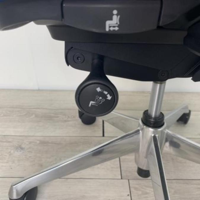 - 座面右下のダイヤル操作で、リクライニングの強弱調整が行えます。これまでのダイヤル式よりも、少ない回転数で、最弱?最強の調整が可能です。