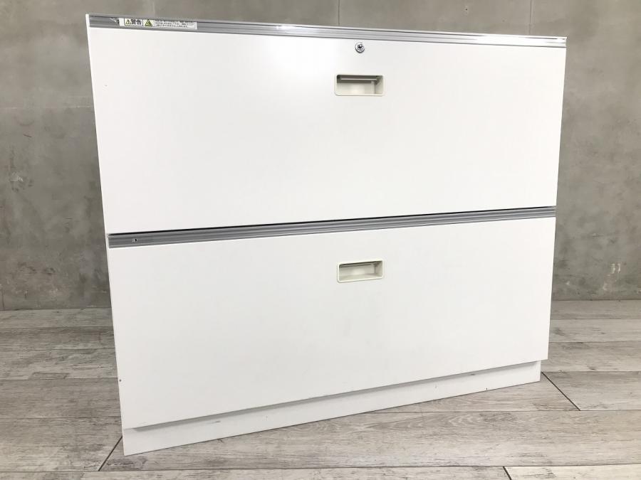 【珍しい2段ラテラルタイプ!】耐久性・機能性を兼ね備えたキャビネット!スペースにジャストフィットする引き出し型収納 ■イトーキ/シンライン/ホワイト シリンダー錠