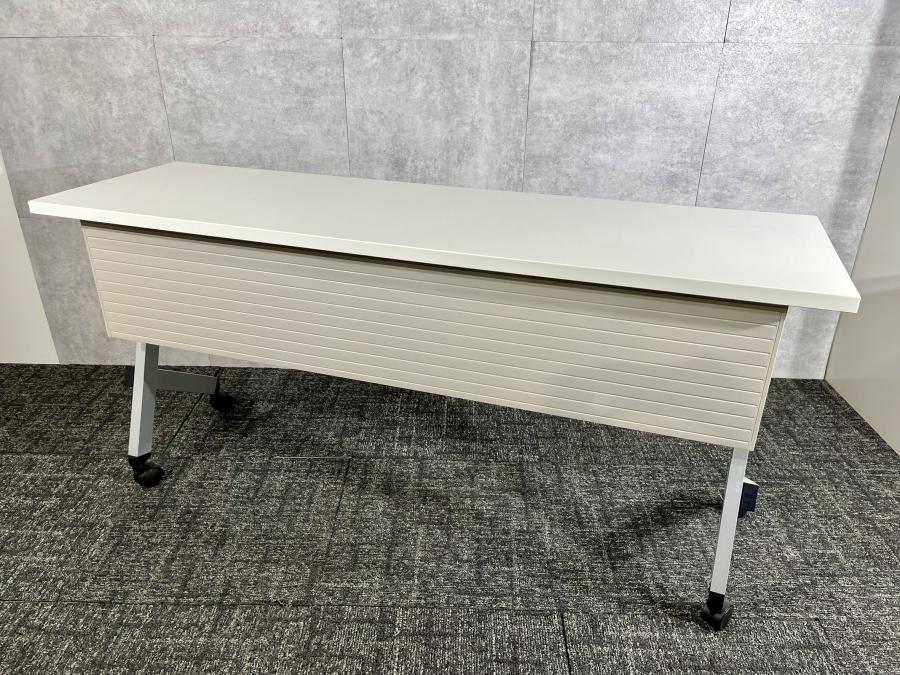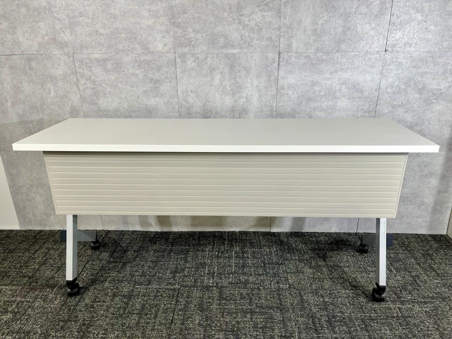 使い勝手抜群!天板を跳ね上げて収納ができるスタックテーブルが入荷!幕板付きで安心! ◆内田洋行/プラッテ(Platte)/ホワイト 横幅1500mm(奥行450mm)フラップテーブル