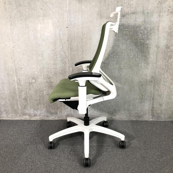 【在庫入替セール】【定価12万円】【高機能で座り心地も抜群!姿勢の変化にフレキシブルに対応!】■イトーキ製 エフチェア ハイバック肘付き ■可動肘 背面メッシュ ■ハンガー付 ■モスグリーン × ホワイトフレーム 【弊社使用欄:A00996730】- 日本橋店