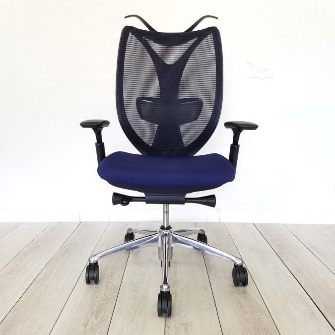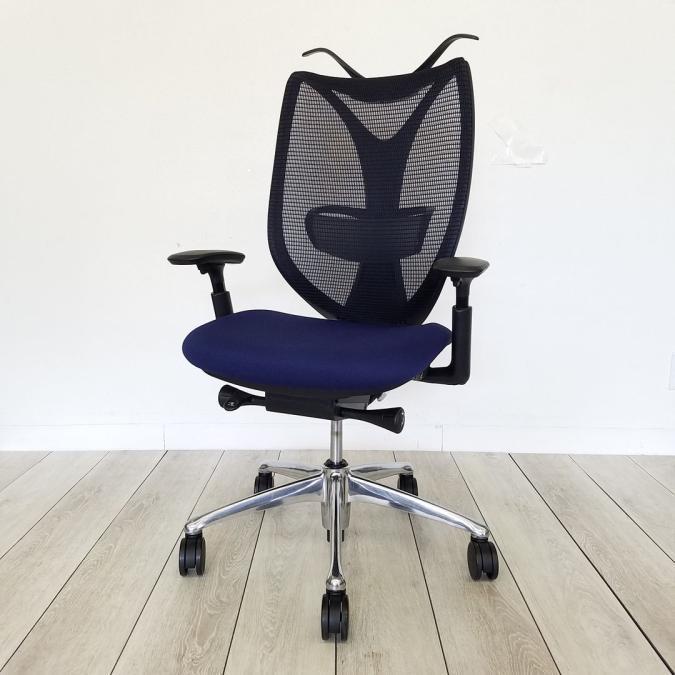 【在庫入替セール】【10脚入荷】流れるような美しいフォルム「サブリナ」入荷!中古 オフィスチェア 高級チェア メッシュチェア テレワーク 在宅ワーク オカムラ ダークブルー アジャストアーム 前傾 ハンガー付き- 豊中・尼崎店
