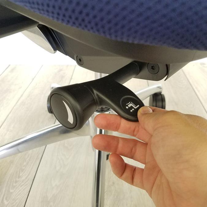 - 座面右下のレバーをスライドさせる「クイックスライドオペレーション」で、リクライニング反力を調整できます。強さの状態が視覚的にわかるため、直感的に操作がおこなえます。