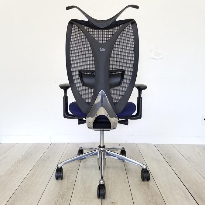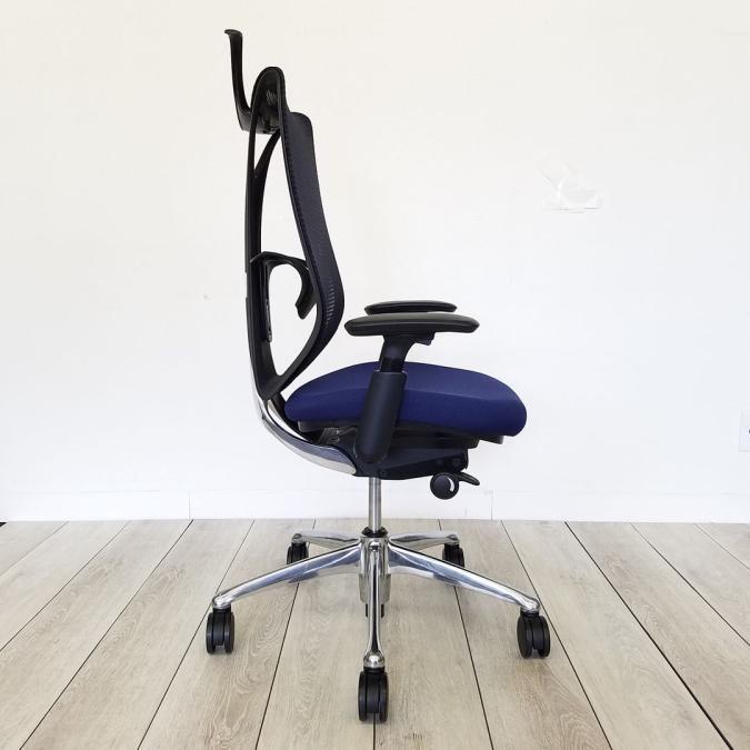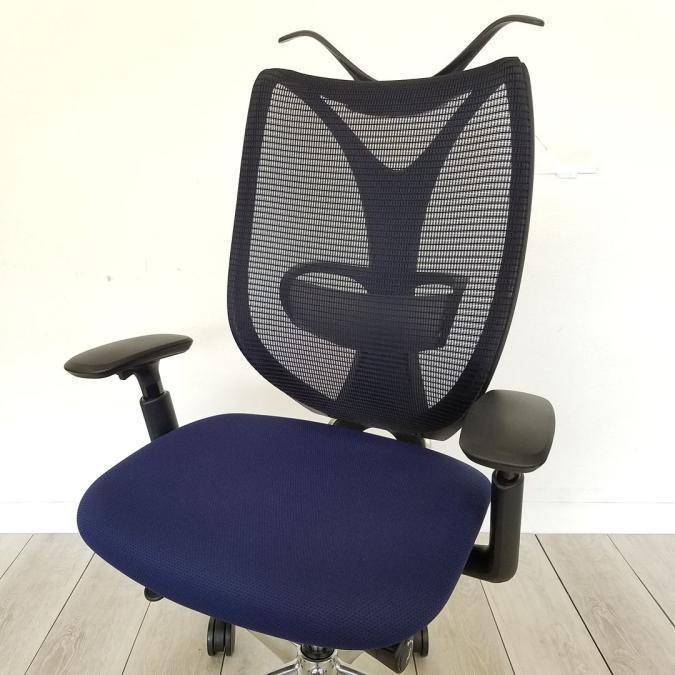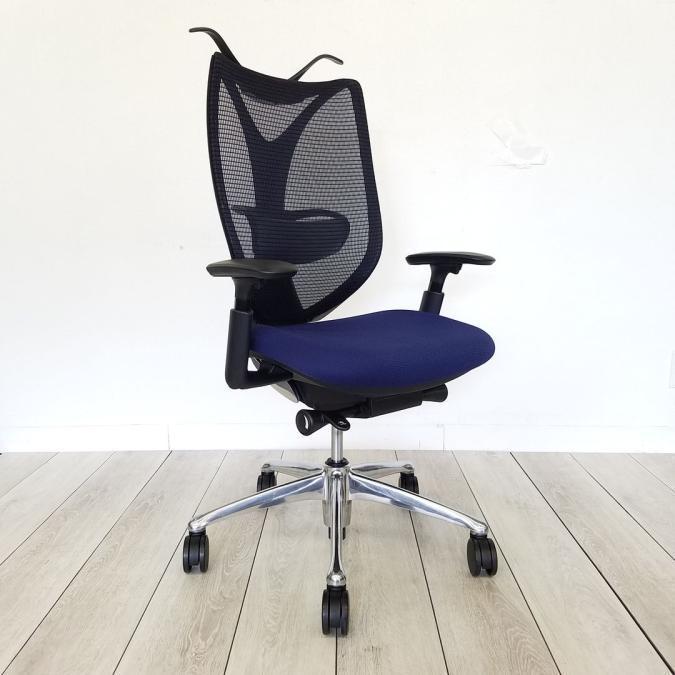 【在庫入替セール】【10脚入荷】流れるような美しいフォルム「サブリナ」入荷!中古 オフィスチェア 高級チェア メッシュチェア テレワーク 在宅ワーク オカムラ ダークブルー アジャストアーム 前傾 ハンガー付き- オフィスチェア店