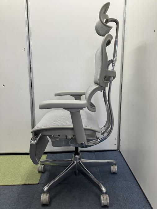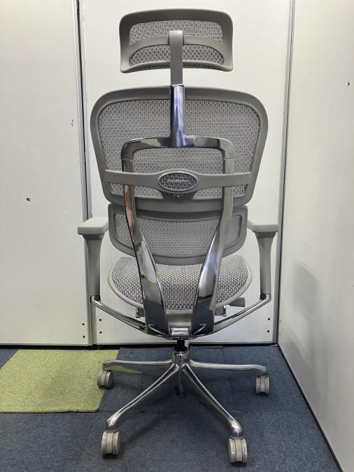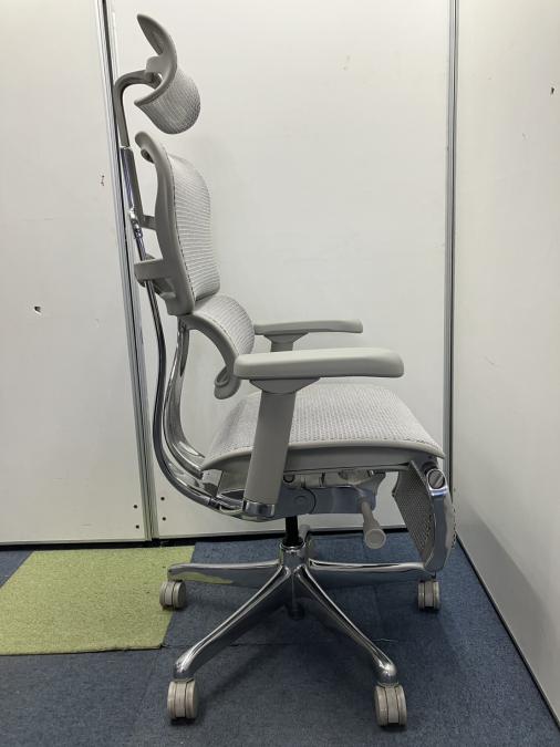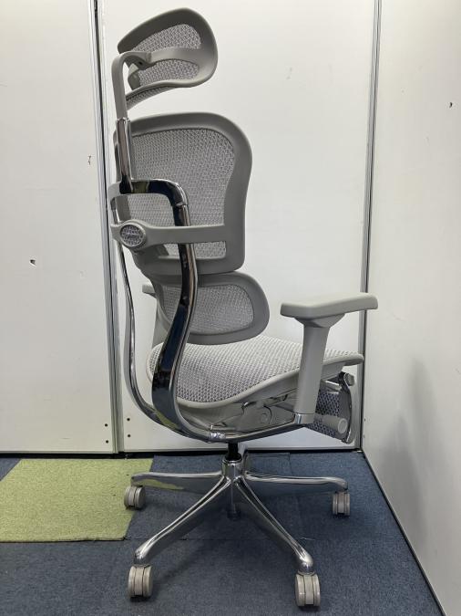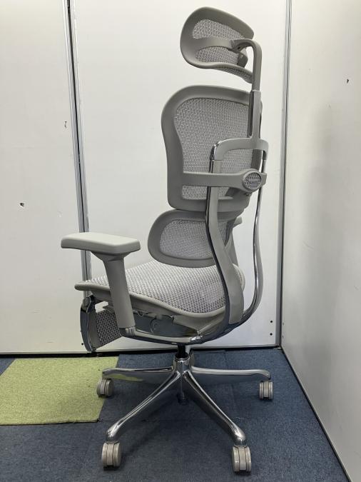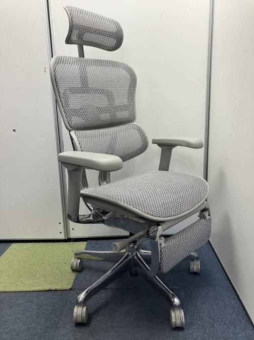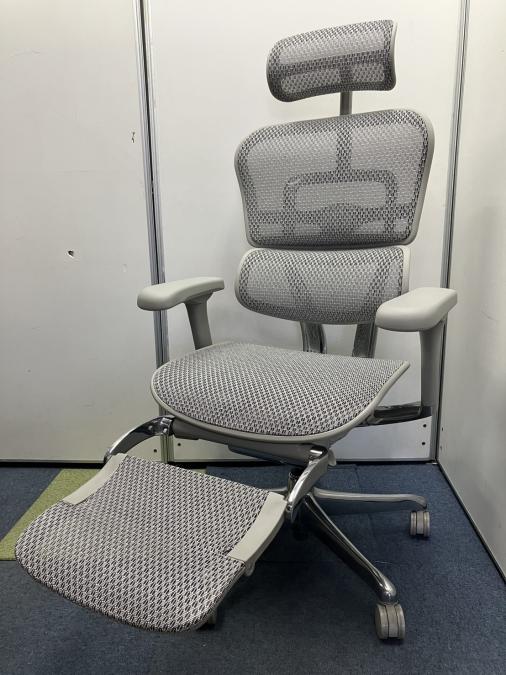 【限定1脚】中古では珍しいヘッドレスト付き ■エルゴヒューマンプロ 大型独立ランバーサポート ヘッドレストつき オットマンつき 可動肘 グレー メッシュチェア- 名古屋本店