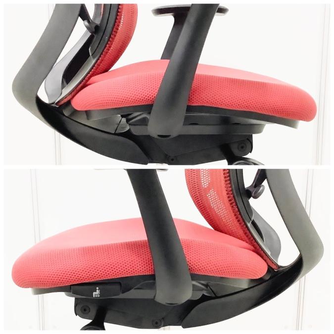 - 座面右下のダイヤル操作で、リクライニングの強弱調整が行えます。これまでのダイヤル式よりも、少ない回転数で、最弱?最強の調整が可能です。
