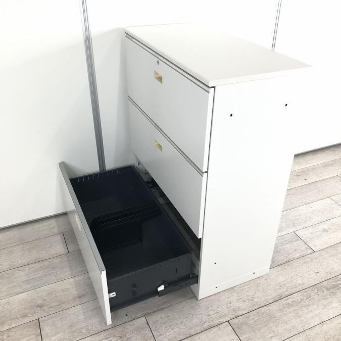 【珍しい2段ラテラルタイプ!】耐久性・機能性を兼ね備えたキャビネット!スペースにジャストフィットする引き出し型収納 ■イトーキ/シンライン/ホワイト シリンダー錠