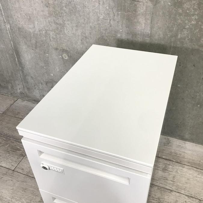 【T12】【商品入替のため、残り4台限り】ウチダ製 ST ホワイト 3段 ワゴン フリアド用 W395×D585xH650サイズ シリンダー錠 デスク下に置いて収納アップ! 使い勝手抜群のキャスター付き フリーアドレスデスク用3段ワゴン!!