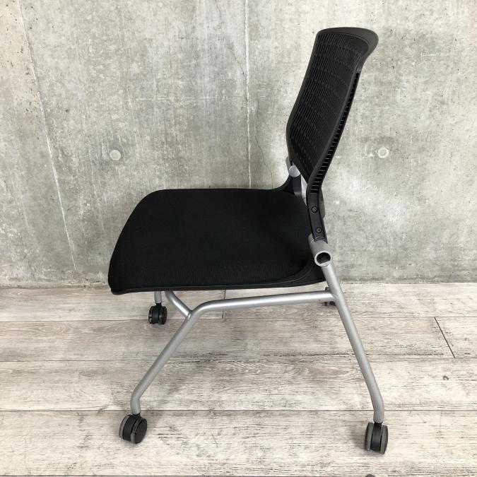 【しなやかにワーカーを受け止める洗練されたデザイン!使わない時は重ねて収納可能!】■オカムラ(okamura)製 グラータ (Grata) 肘無し ミーティングチェア ネスティングチェア ■背面樹脂メッシュ/背パッドなし ■座面:ブラック ■キャスター付