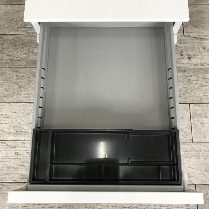 - 一部不具合ありその脇机・ワゴンの本来の効用を果たすための機能以外の一部が使用不可な状態。(例、引出が開閉しづらい、 キャスターロック機能使用不可、ラッチ不良 等がある。)