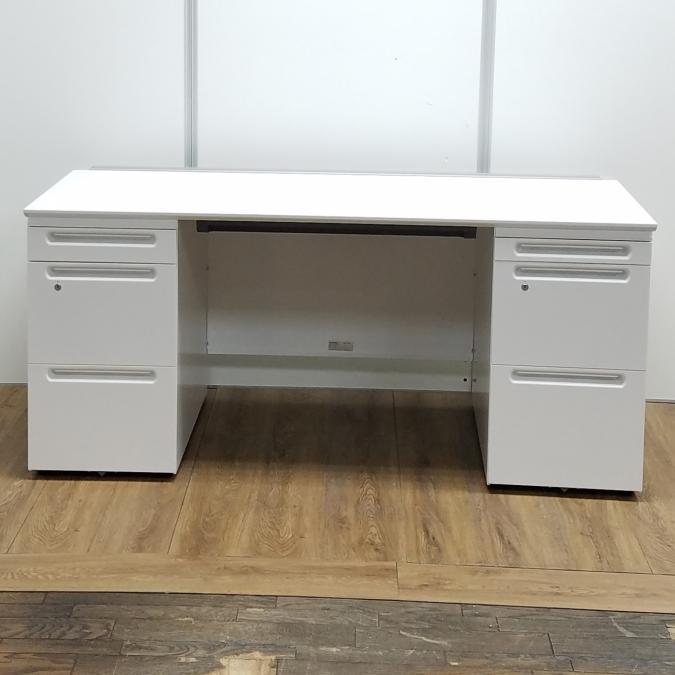 【広々としたワークスペースと収納力!上長デスクとしてもオススメ!】■クロガネ製 両袖デスク W1600 ■ホワイト ■シリンダー錠- 大阪・堺店