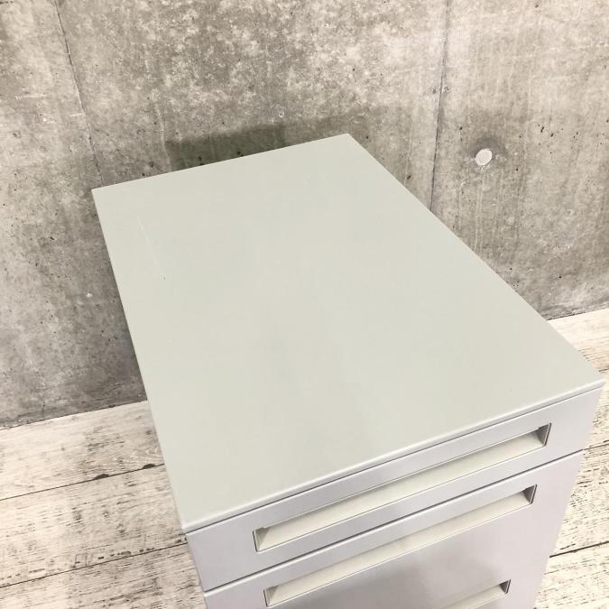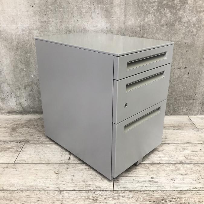 【デスク下に置いて収納アップ!使い勝手抜群のキャスター付き3段ワゴン!】■ウチダ製 STシリーズ デスクインワゴン H610㎜ ■マイルドグレー ■シリンダー錠- 大阪・堺店