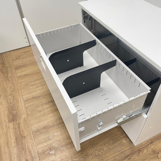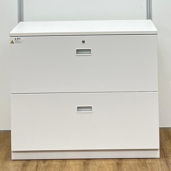 【珍しい2段ラテラルタイプ!】耐久性・機能性を兼ね備えたキャビネット!スペースにジャストフィットする引き出し型収納 ■イトーキ/シンライン/ホワイト シリンダー錠
