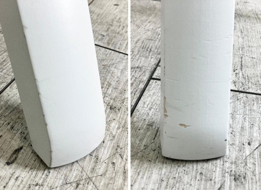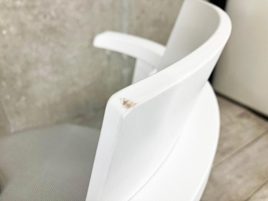 - かなり強い濃い黄ばみ・変色が商品全体にある。(例、座面・背もたれ、脚部等にある。)