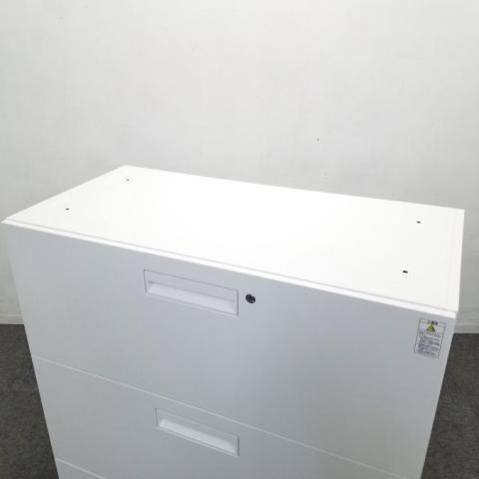 【2020年製】【収納力抜群の3段ラテラル書庫!A4書類が大量に収納可能!】■コクヨ(KOKUYO)製 エディア(EDIA)シリーズ 3段ラテラル ローキャビネット H1130㎜ ■天板・ベース付き ■ホワイト ■シリンダー錠【2511】弊社使用欄【A01044970】