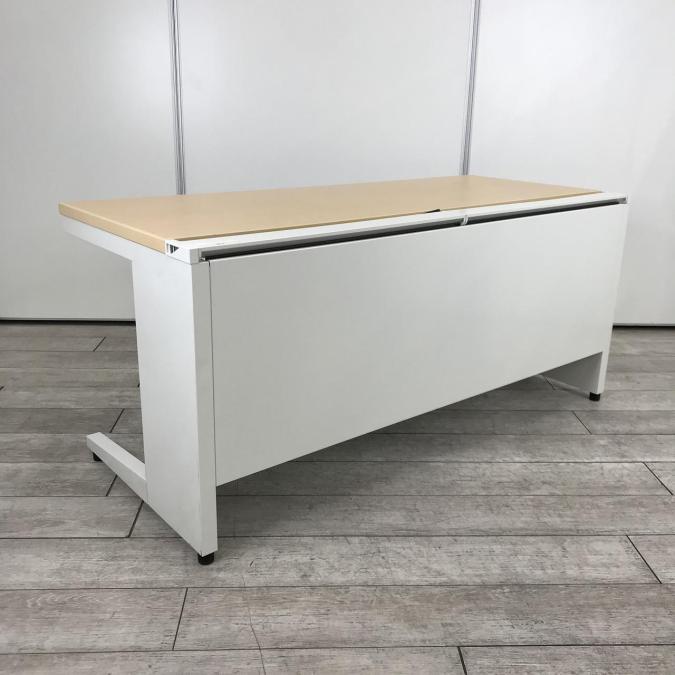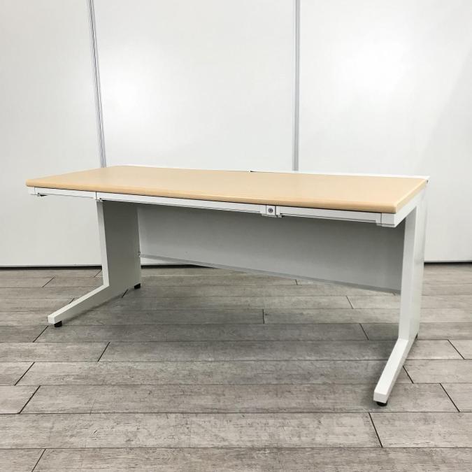 【ゆとりのあるワークスペースで作業効率アップ!使いやすさを追究したW1600㎜デスク!】■プラス製 USシリーズ 平デスク W1600×D700×H720mm 引出し付 ■天板:木目カラー×本体ホワイト ■シリンダー錠- つくば店
