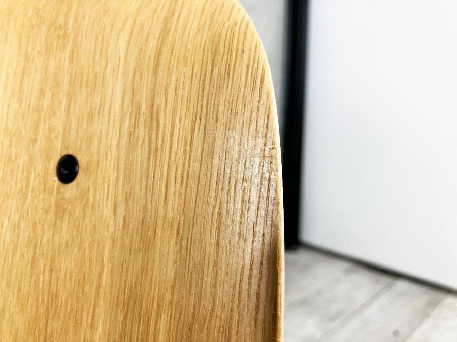 力強い曲線と究極の軽さを組み合わせ、それまで平面の合板では不可能だった立体的な造形を作り出しています。 頻繁に変わる姿勢や動きを考慮し、スムーズに体を動かせるよう、座面のアウトライン全体を非常に薄く、柔らかなフォルムにすることで、常に快適な座り心地になるようデザインされています。