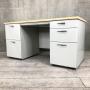 【人気の木目カラー天板!】■ナイキ製 両袖デスク W1400mm 引出し付(左2段×中1段×右3段) ■ナチュラル天板×本体ホワイト ■シリンダー錠- 在庫数