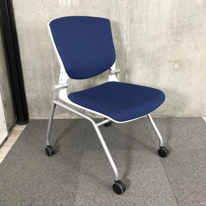 小肘付ネスティングチェア/背面クッション付き/ネイビー/オカムラ製/福岡/天神/博多/中古/安い