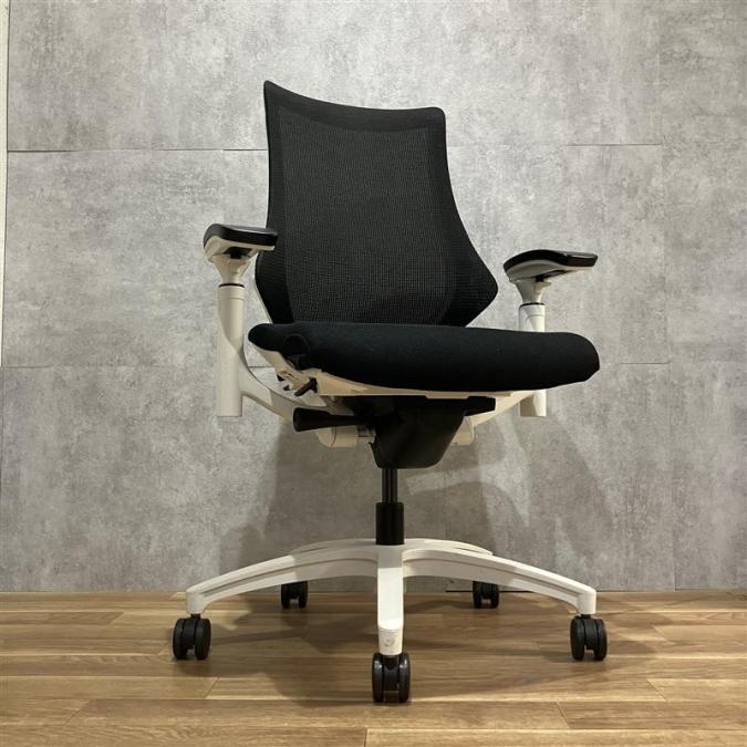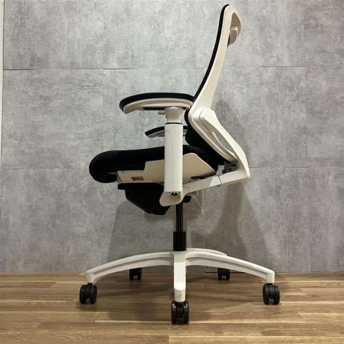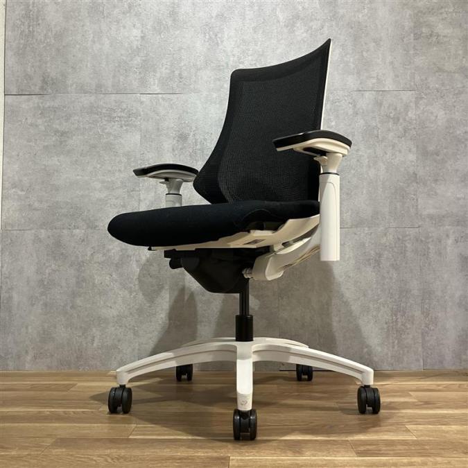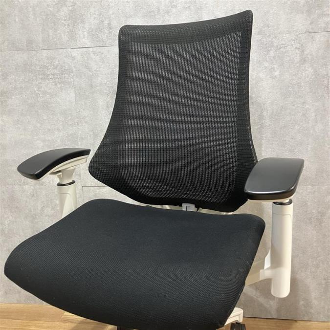 【姿勢の変化にフレキシブルに対応する高機能メッシュチェア!】■イトーキ(ITOKI)製 エフ(f)チェア 肘付 ハイバック 背面メッシュ ■可動肘・ハンガー付 ■ブラック ※肘キズ有【弊社使用欄:A01049388】
