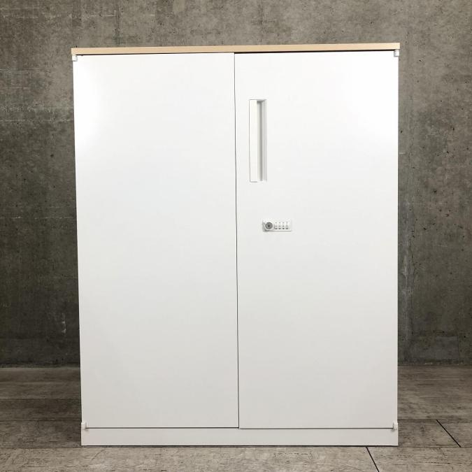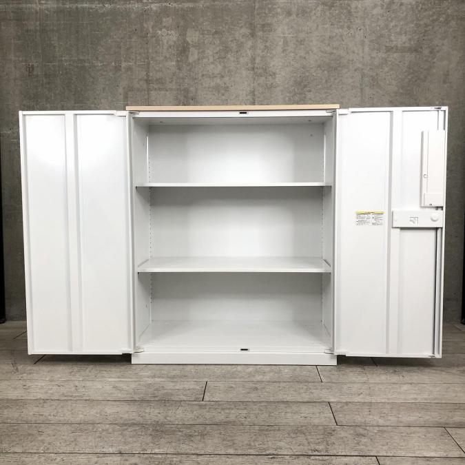 【在庫入替セール品!】人気の観音開きタイプ!取っ手が大きく使い勝手のよい定番キャビネット! ■内田洋行/HSシリーズ/ホワイト 天板ナチュラル