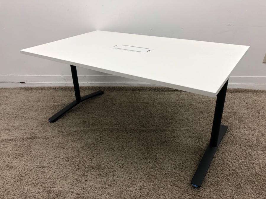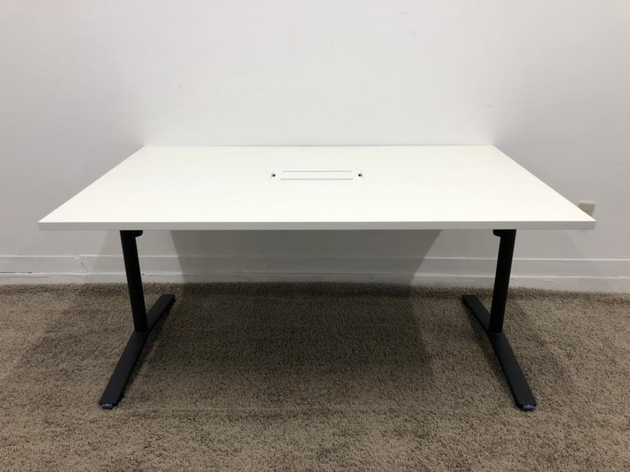 【ダクト付き】コクヨ ビエナ ホワイト ミーティングテーブル ブラック脚 会議用 博多 天神【オフィスバスターズ】【中古】- 福岡博多店