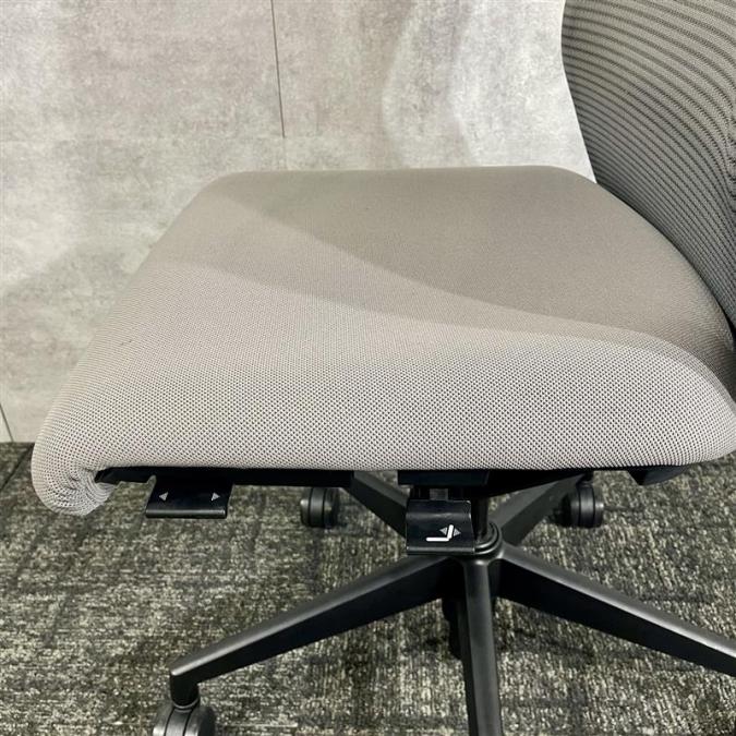 もちろん見た目だけでなく、オフィスでの使いやすさも考えられています。例えば、普通のチェアでは離着席時に背もたれを持つので、背もたれの上部が少しずつ汚れてきます。しかし、エルフィでは、背もたれのフレームに取っ手がついており、それを押し引きできるので、クッションやメッシュを汚すことなく綺麗な状態で長くお使いいただくことができます!