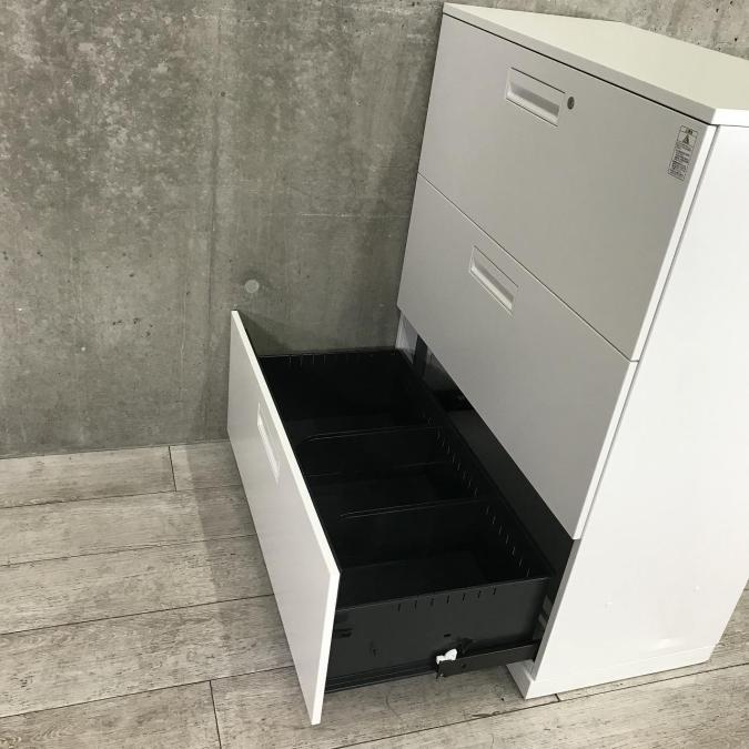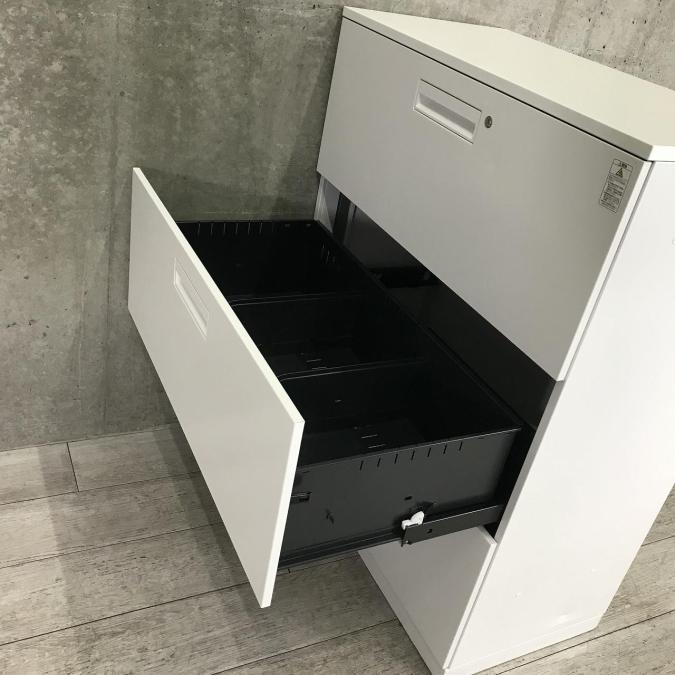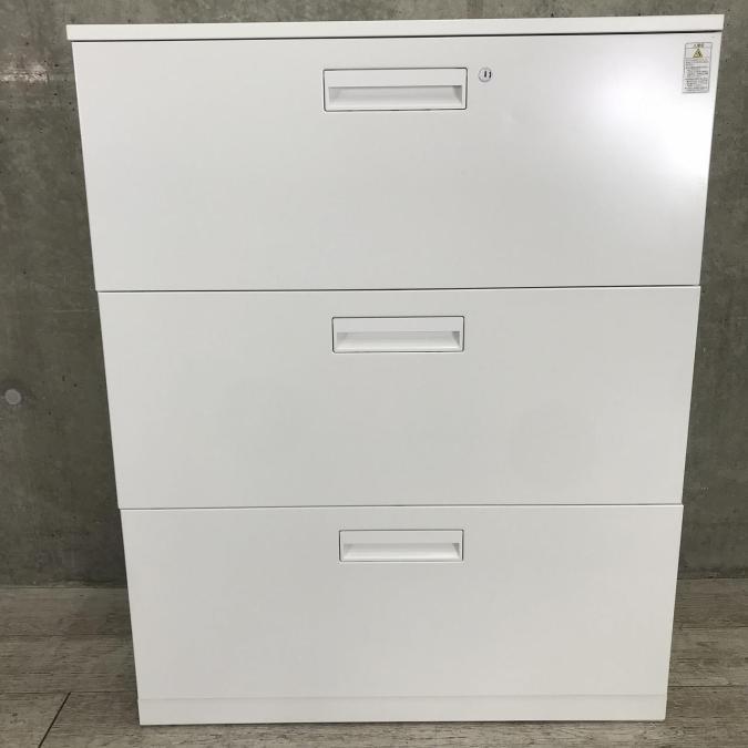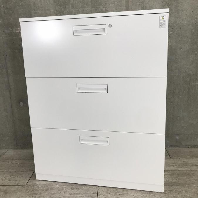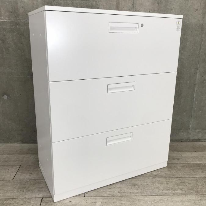 コクヨ エディア 3段ラテラル書庫 引き出し 収納 天板あり ホワイト/佐賀 格安【福岡オフィス家具】【福岡中古家具】【中古事務什器】【中古チェア】【中古椅子】- 福岡西店