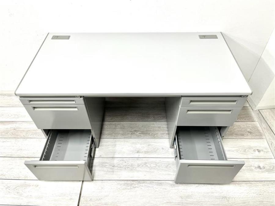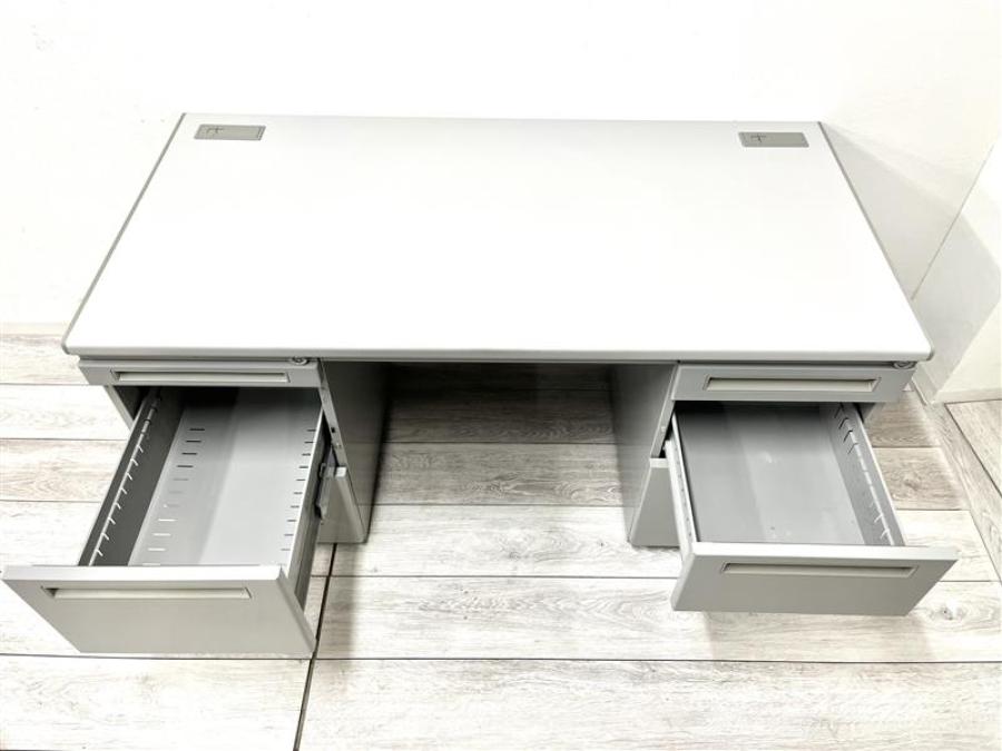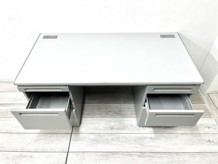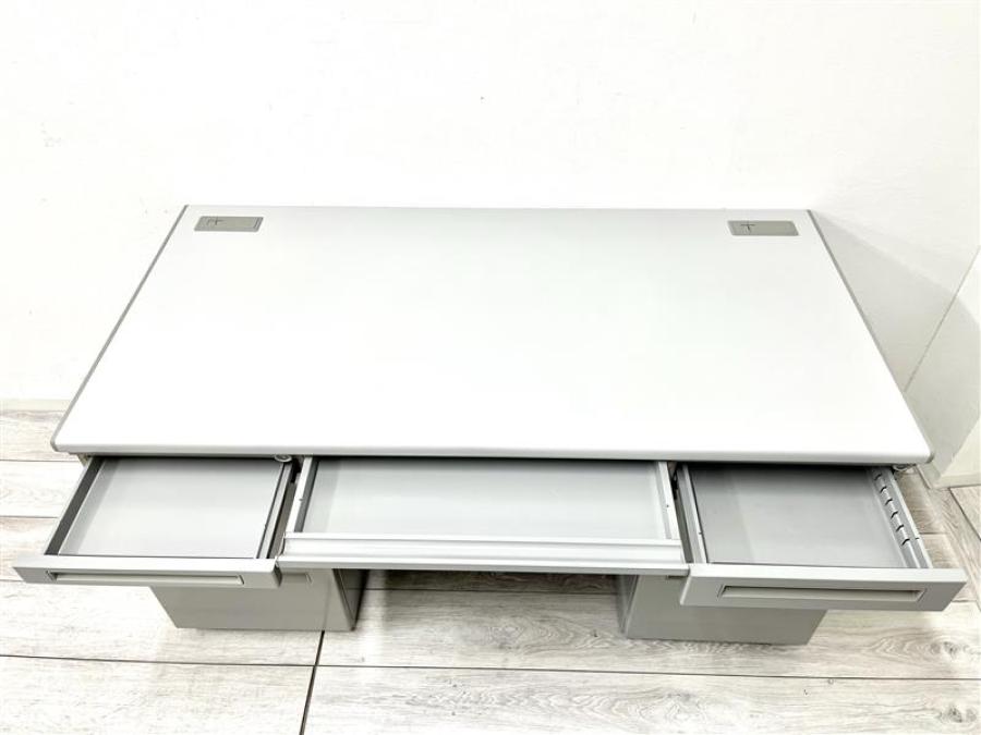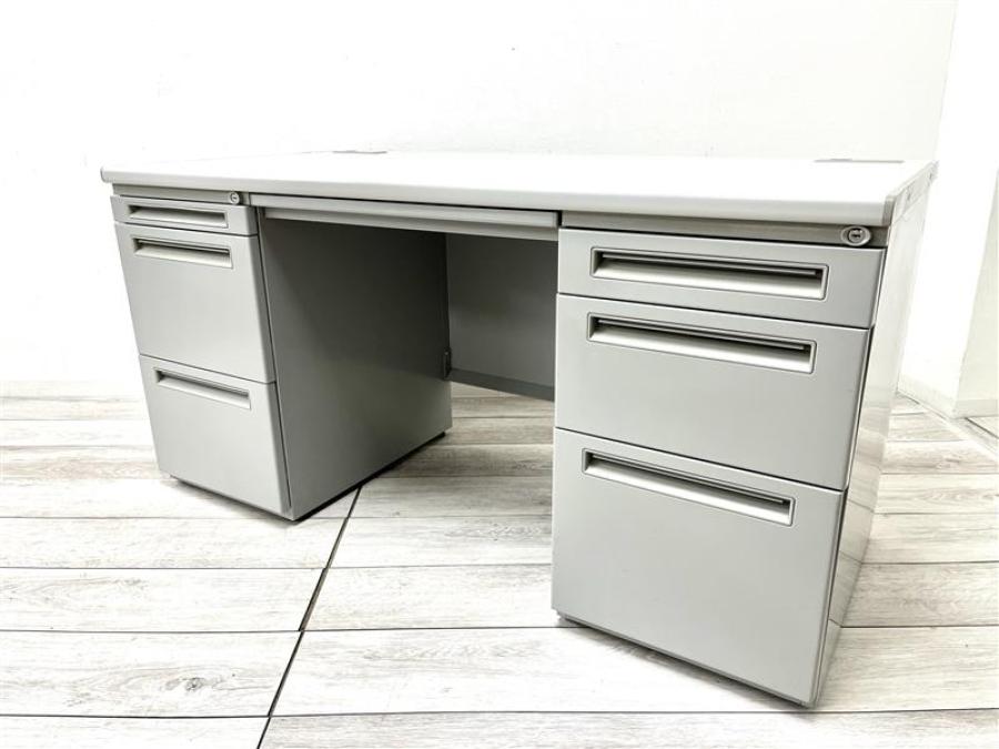 【在庫セール品】【定価約13万円】【収納力抜群!左3段右3段の引き出し付きの両袖机!】■内田洋行/FEED ■グレー ■両袖机- 仙台店
