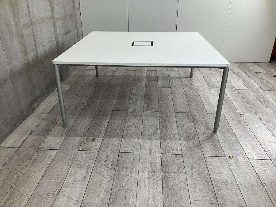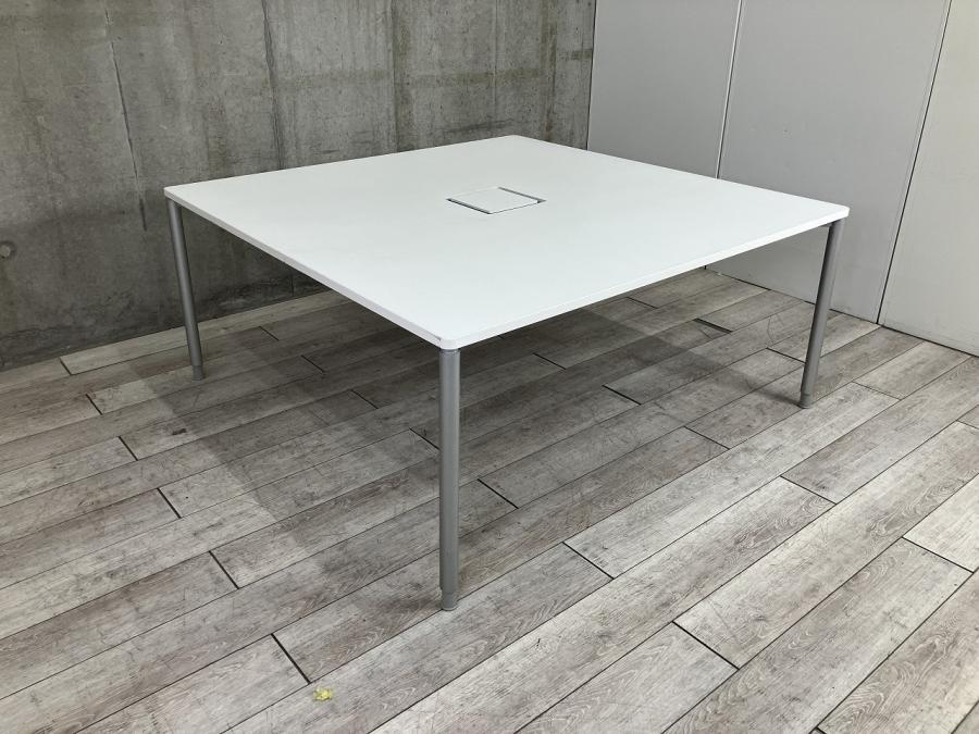 【スタイリッシュなミーティングテーブル!ワークデスクとしても使用可能!】 ■オカムラ製 角テーブル ■W1600mm ■配線口 ■ホワイト- 名古屋本店