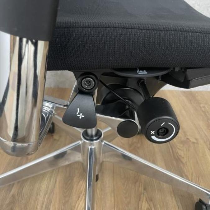 もちろん座り心地もコンテッサの直系ですから快適です。座面の素材はクッションとメッシュの2タイプあります。私、個人的には座面の中心部分でも外側でもテンションが変わらないクッション素材が、足を閉じても開いても快適なので推しです!"