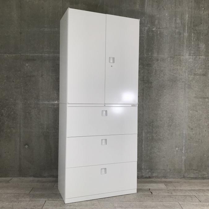 【オフィスの書類をスッキリ整理!大人気レクトラインの上下書庫セット!】■オカムラ(okamura)製 レクトラインシリーズ 両開き+3段ラテラル 書庫セット H2150㎜ ■シリンダー錠 ■ホワイト