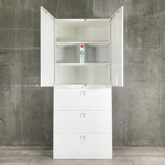 オカムラ レクトライン 3段ラテラル+両開き扉の書庫セット ホワイト シリンダー錠 鍵お付けします 人気商品