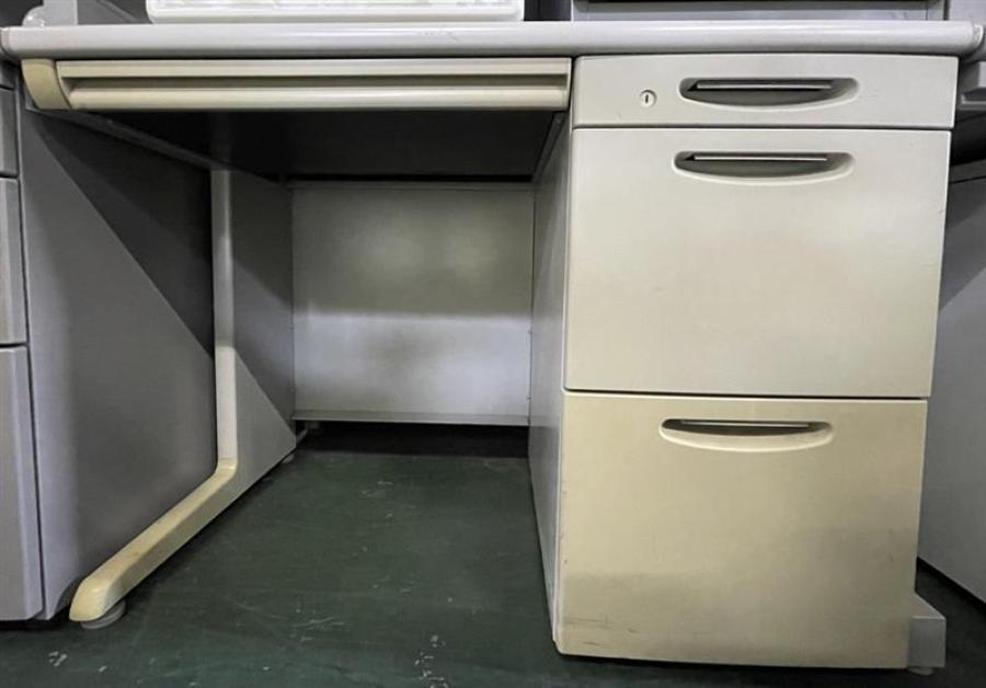 【訳アリ】※日焼けあり※ オカムラ SD 片袖机 ライトグレー 配線カバー 収納 引き出し A4 書類 袖付き 袖机 事務机- 福岡博多店