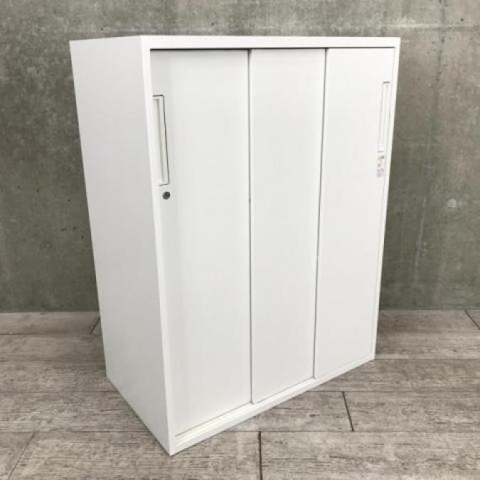 3枚引き戸書庫 コクヨ エディア 鍵付き(シリンダー錠) 天板付き 清潔感のあるホワイトキャビネット 導線を邪魔しないスライド式の扉