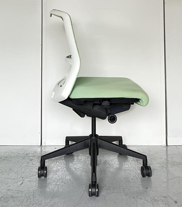 また、個人的にオススメなのは『フルアジャスタブル肘』というアーム部分が斜め前に伸びていくタイプの肘置きを搭載したモデルです。高さを上げれば上げるほどパッドが前方に迫り出していくので、デスクワークの際にちょうど肘を置きたい場所に肘置きがきます。これがとても快適なので、ぜひ一度お試しいただきたいです!*エルフィチェアの肘パーツはフルアジャスタブル肘の他に、固定肘、アジャスタブル肘などがあります。