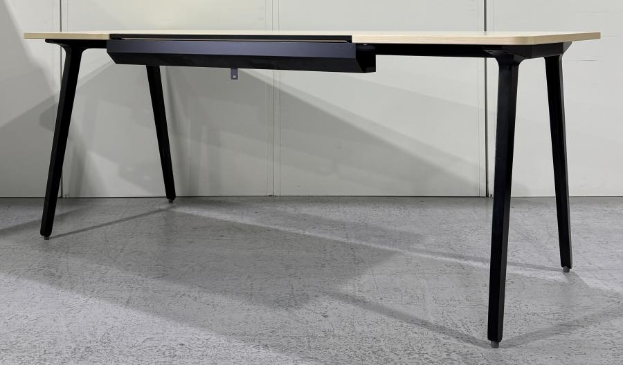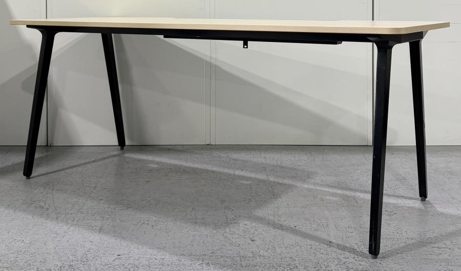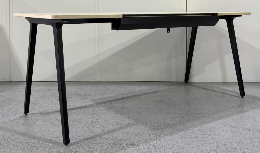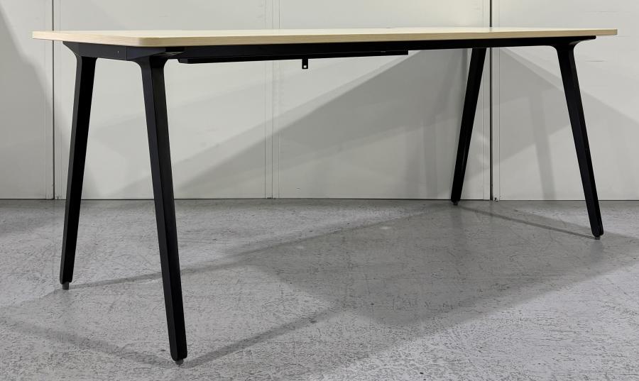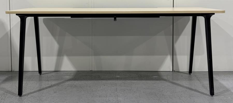 【限定2台】■ウチダ(UCHIDA) レムナシリーズ ミーティングテーブル 会議用 ■W1800×D700㎜ 配線口つき ■ナチュラル天板/ブラック脚 4本脚 オシャレ 執務室 打ち合わせ 会議 研修 休憩 リフレッシュ オフィスバスターズ 梅田本店- 大阪梅田本店
