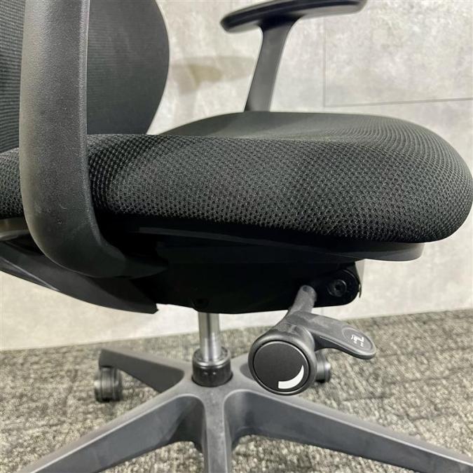 - 座面右下のダイヤル操作で、リクライニングの強弱調整が行えます。これまでのダイヤル式よりも、少ない回転数で、最弱?最強の調整が可能です。