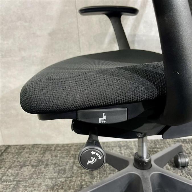 - 座面の左にあるレバー操作により、座面の奥行き調整が可能です。(ストローク:50mm)