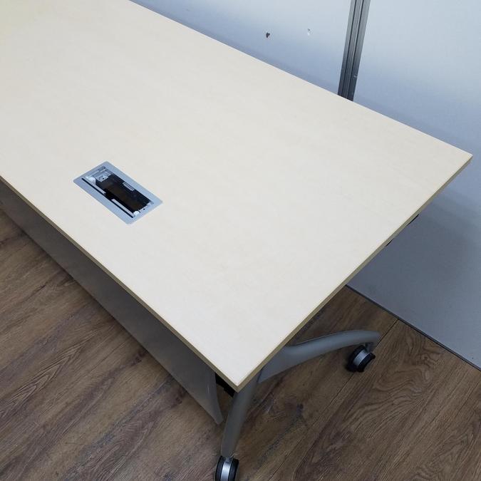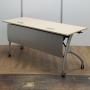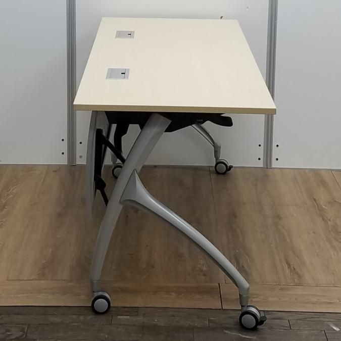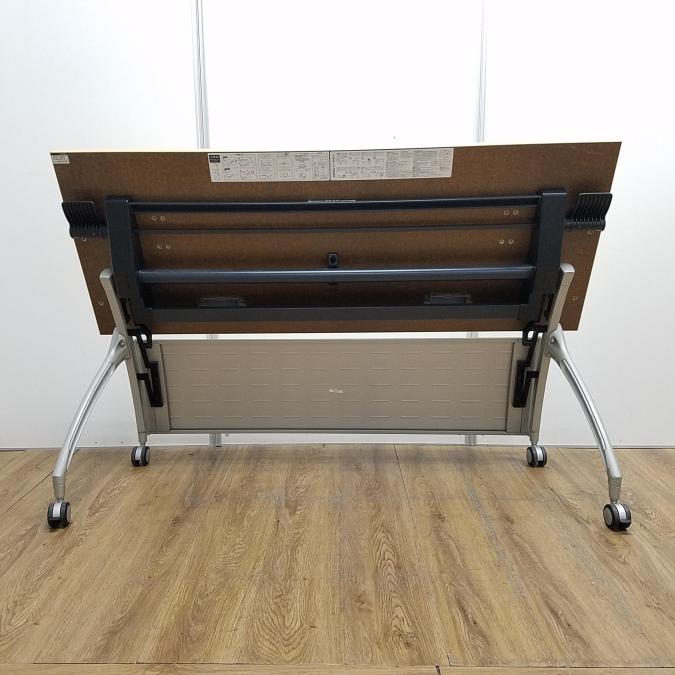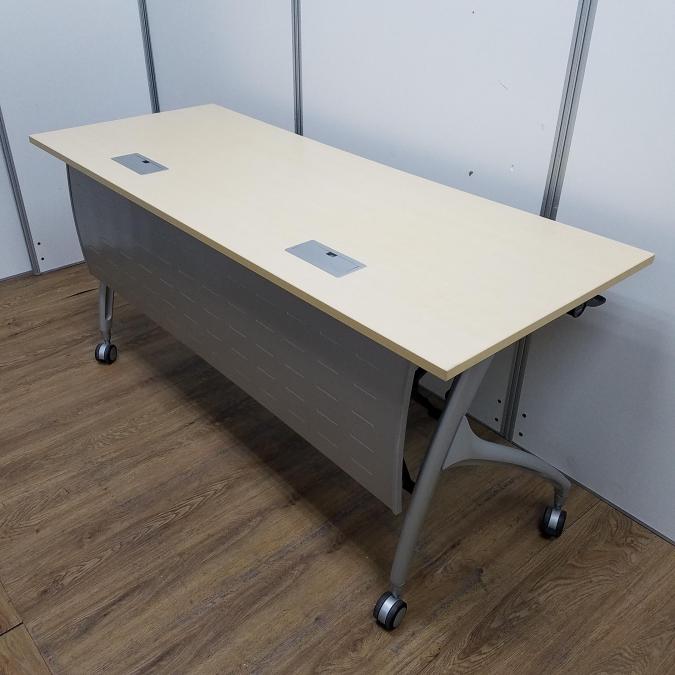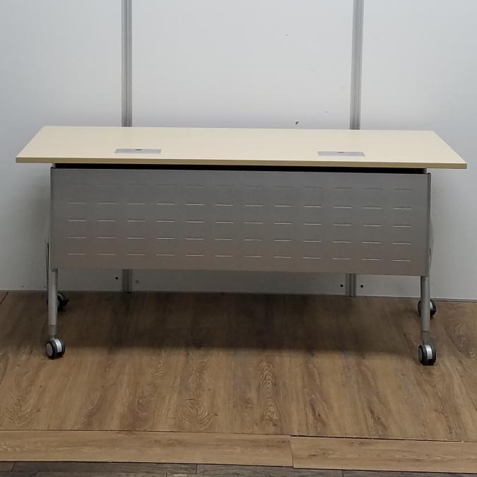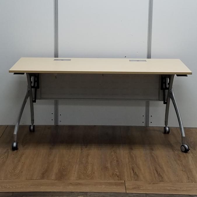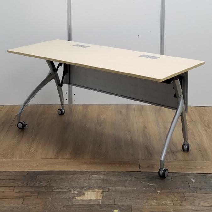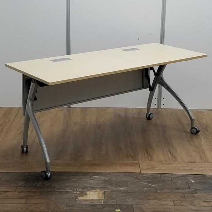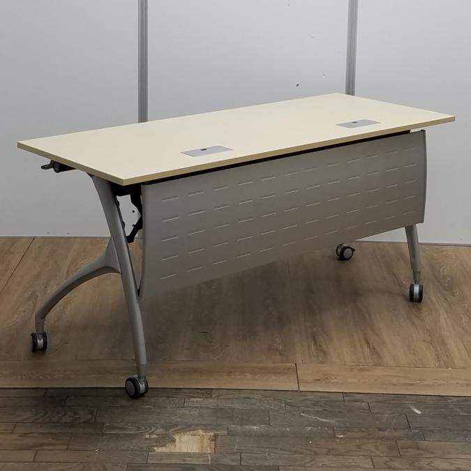 【商品入替のため、残り1台限り】イトーキ製 リリッシュシリーズ 木目ナチュラル天板 W1500×D600サイズ 幕板/配線ダクト付き しなやかな曲線デザインの便利な折り畳みテーブル! サイドスタックテーブル!!- 京都東寺店